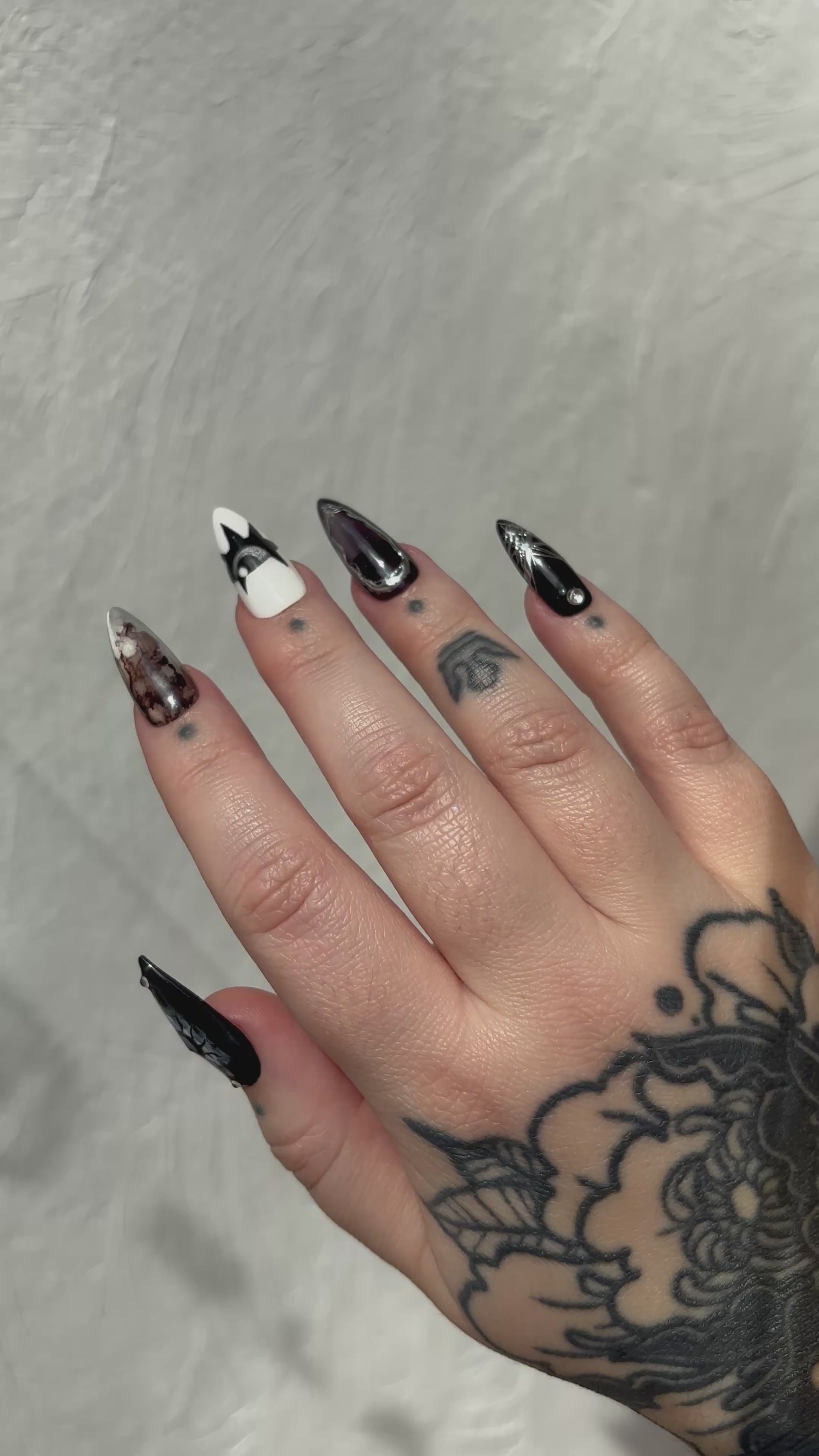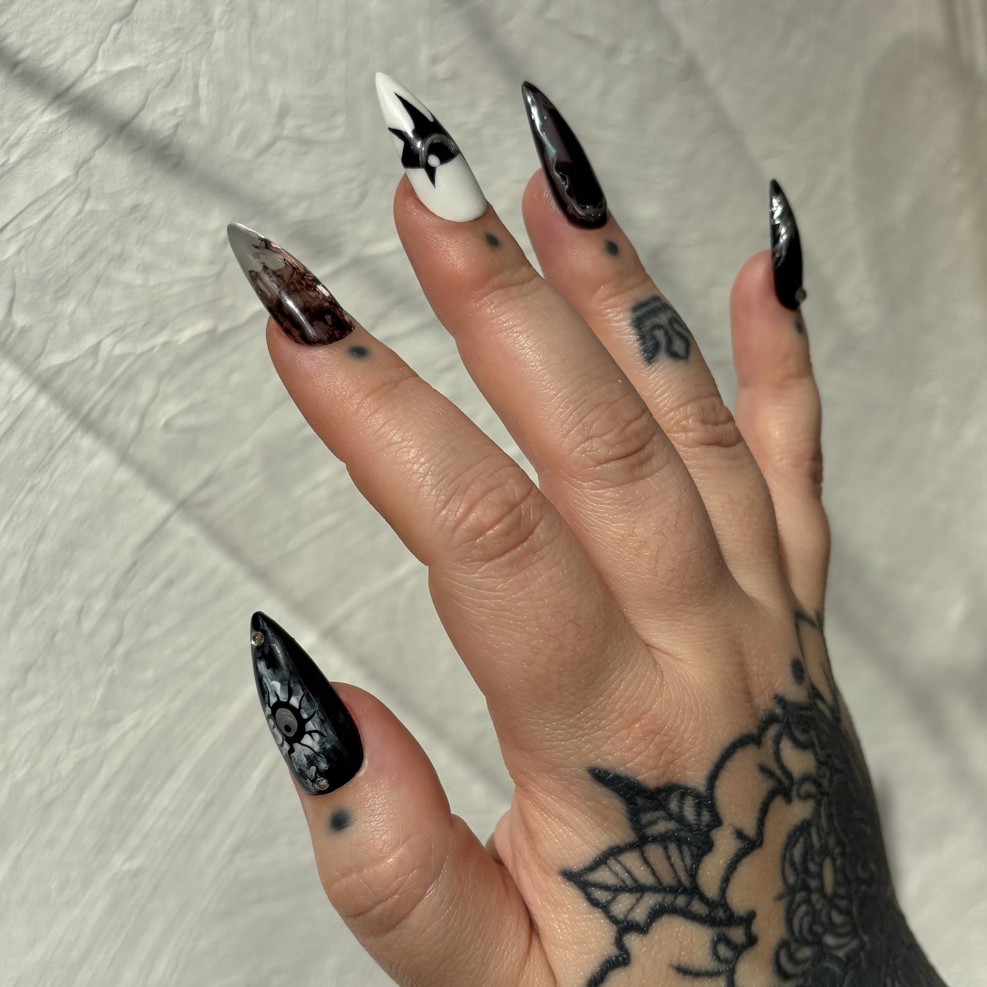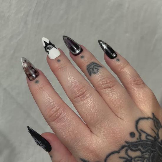 Le style affirmé de l’artiste tatoueuse Migi, mais sur vos ongles ? Non, vous ne rêvez pas, vous pouvez désormais commander votre set totalement pensé et designé par la spécialiste du spooky-witchy ! La solution idéale si vous aviez craqué sur son univers, mais pas l’envie de vous faire encrer à vie…