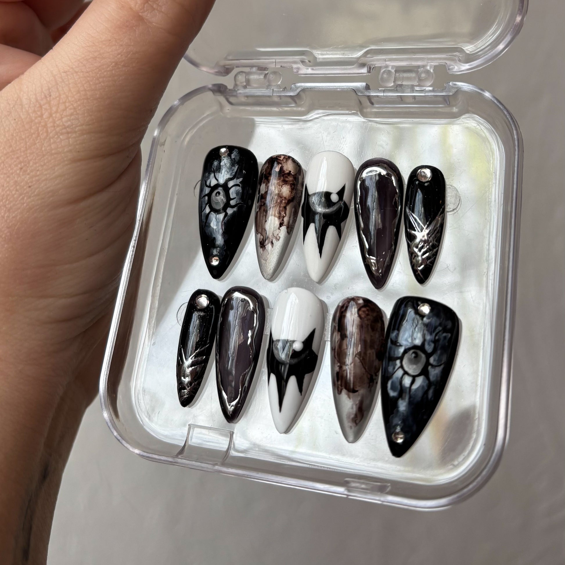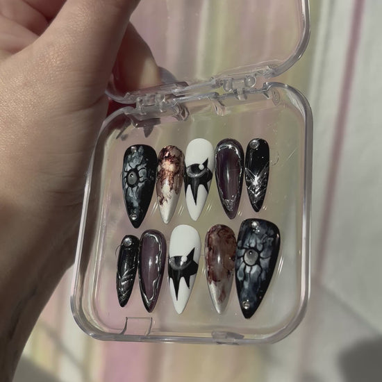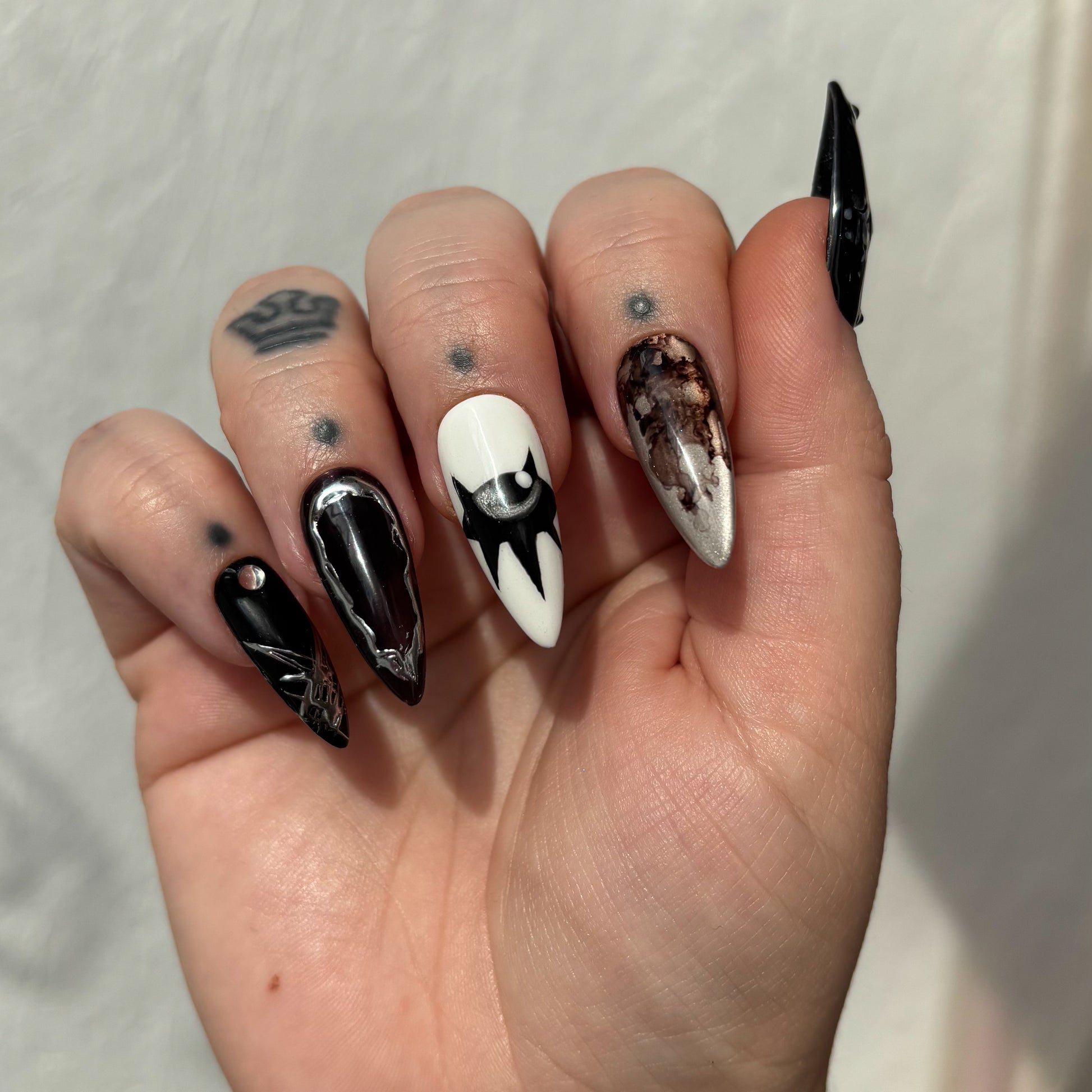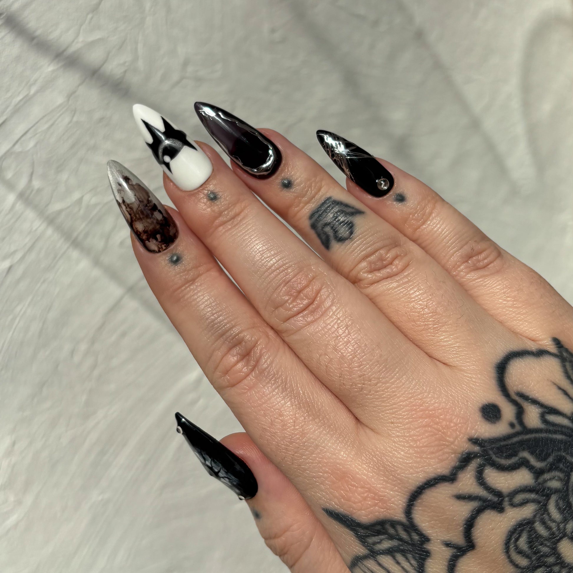 Le style affirmé de l’artiste tatoueuse Migi, mais sur vos ongles ? Non, vous ne rêvez pas, vous pouvez désormais commander votre set totalement pensé et designé par la spécialiste du spooky-witchy ! La solution idéale si vous aviez craqué sur son univers, mais pas l’envie de vous faire encrer à vie…